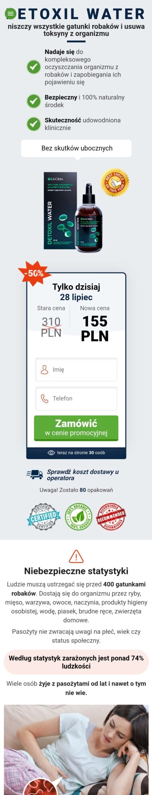 Przedstawione referencje i doświadczenia z produktem Detoxil Water mogą не reprezentować typowych wyników i nie mogą być traktowane jako gwarancja skuteczności. Informacje na tej stronie służą wyłącznie celom informacyjnym i nie zastępują konsultacji lekarskiej. Przed użyciem produktu skonsultuj się ze specjalistą.